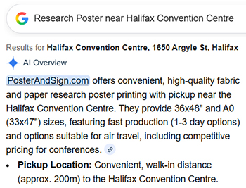 Google's Overview of Halifax Research Poster Pickup Centre adjacent to Halifax Convention Centre